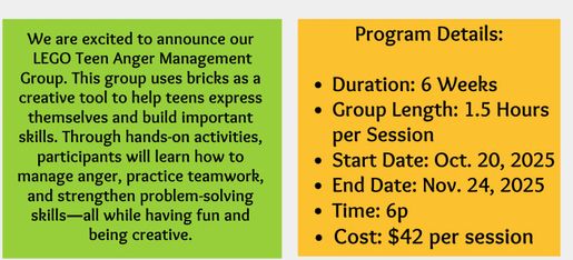 This group uses LEGO as a creative tool to help teens express themselves and build important skills. Through hands-on activities, participants will learn how to manage emotions, practice teamwork, and strengthen problem-solving skills—all while having fun and being creative.